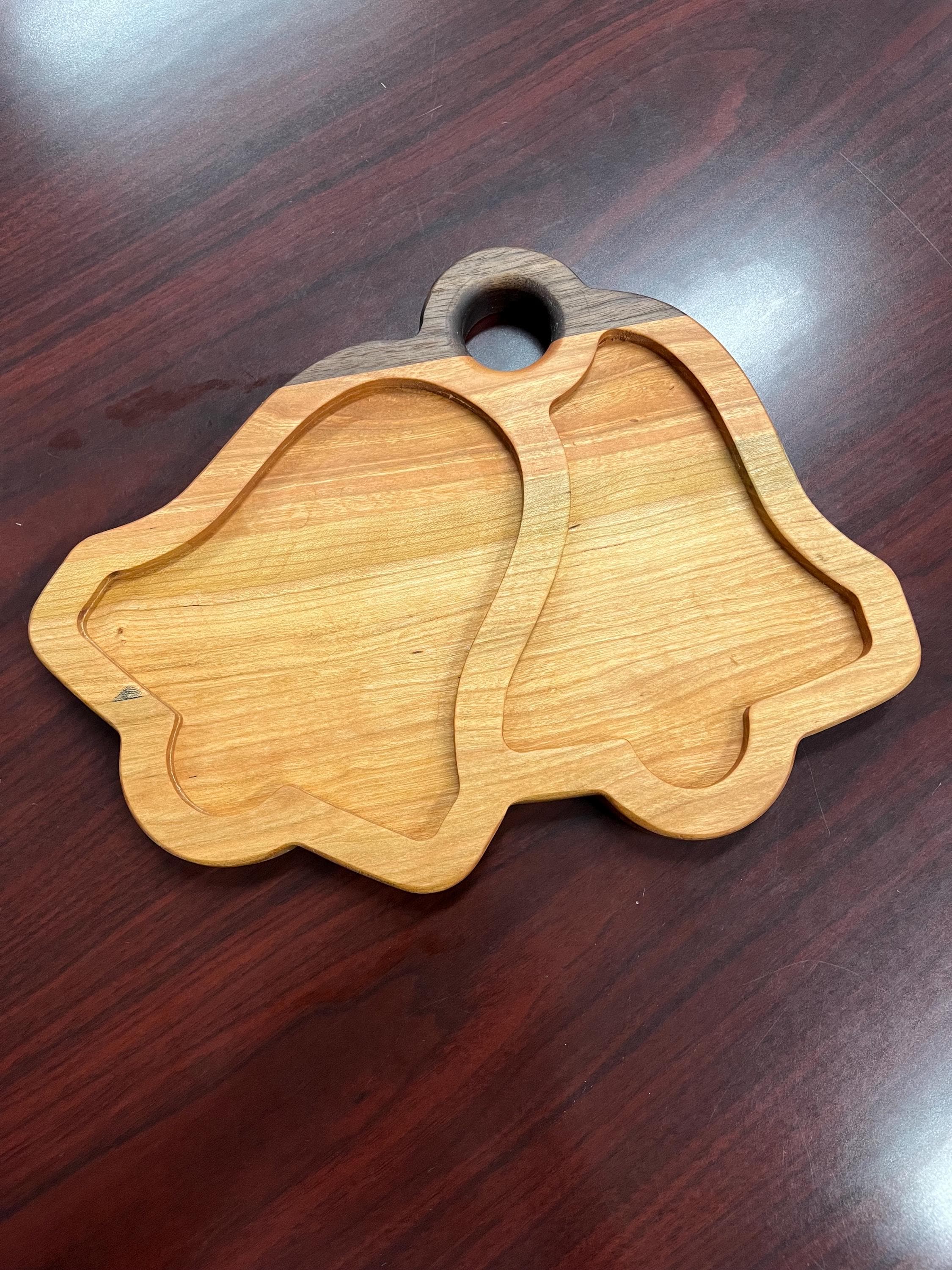 This is a beautiful Christmas Bells Tray or bowl. Made with Black walnut, cherry and Maple hard woods. Coated with food safe mineral oil and bees wax. No harsh chemical or stains used. All natural. Makes a great holiday or Christmas gift. Great to have holiday / Christmas treats displayed.