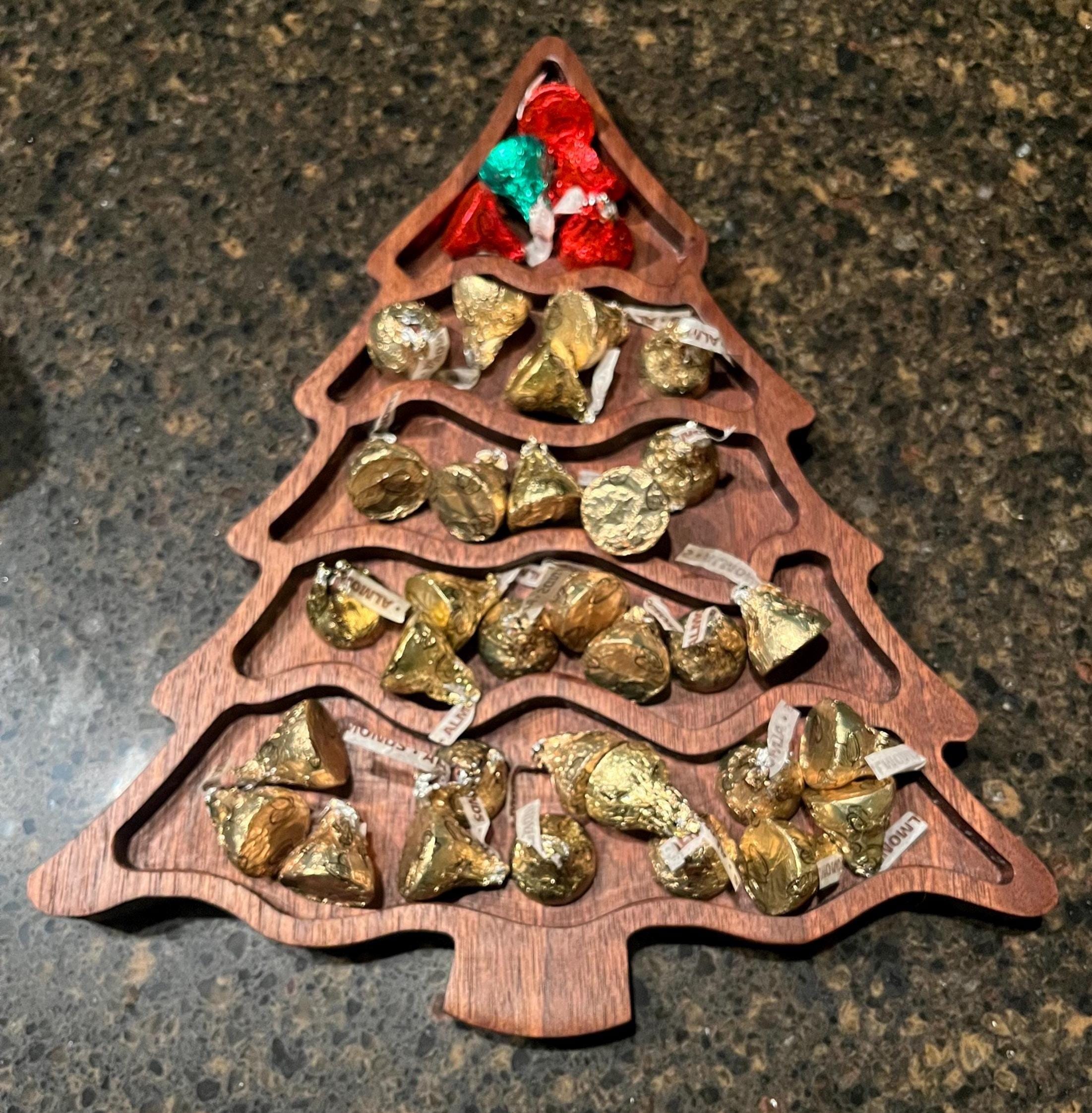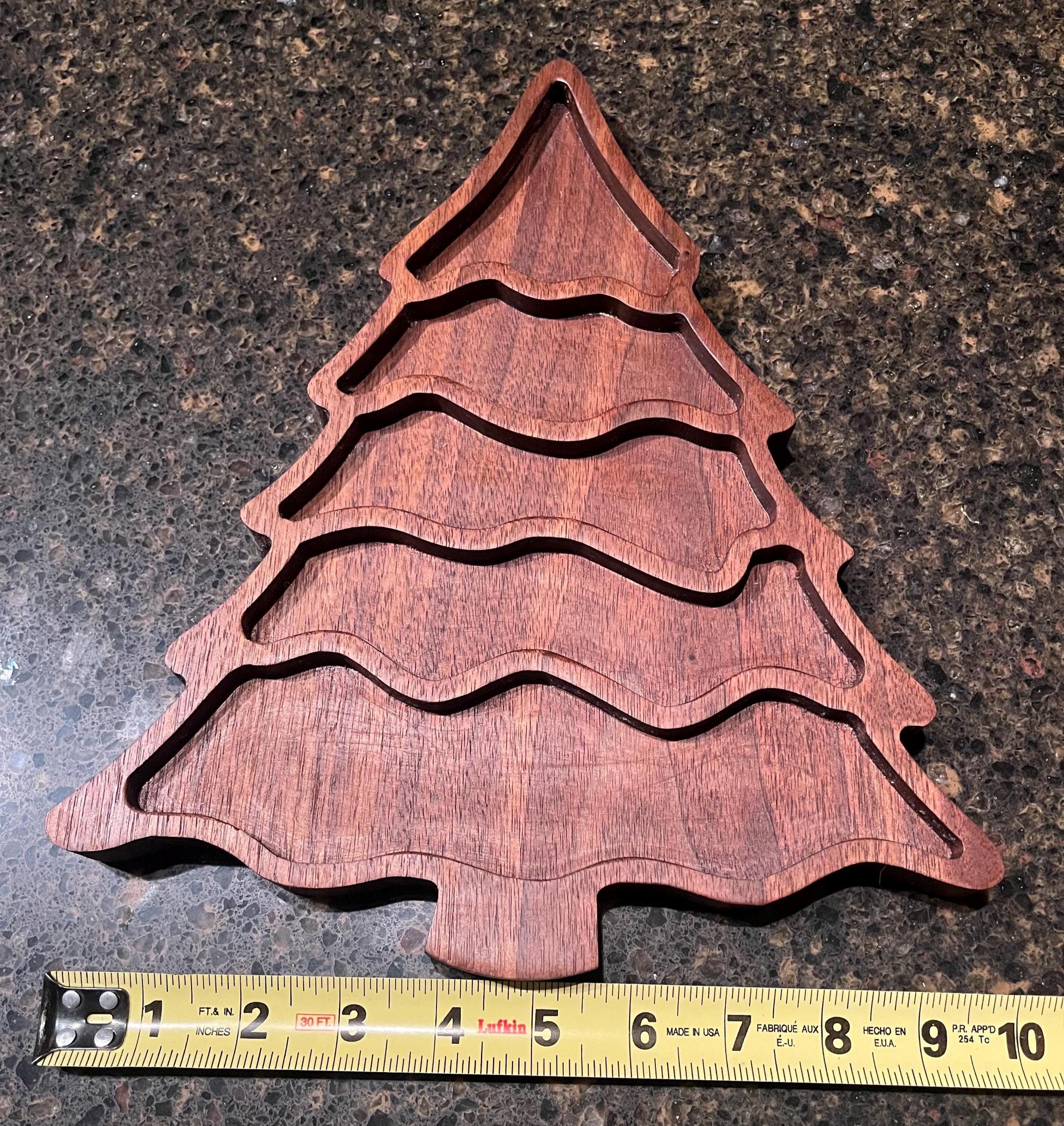 This is a beautiful Christmas Tree Tray or bowl with 4 sections. Made with Black walnut. lCoated with food safe mineral oil and bees wax. No harsh chemical or stains used. All natural. Makes a great holiday or Christmas gift. Great to have holiday / Christmas treats displayed.